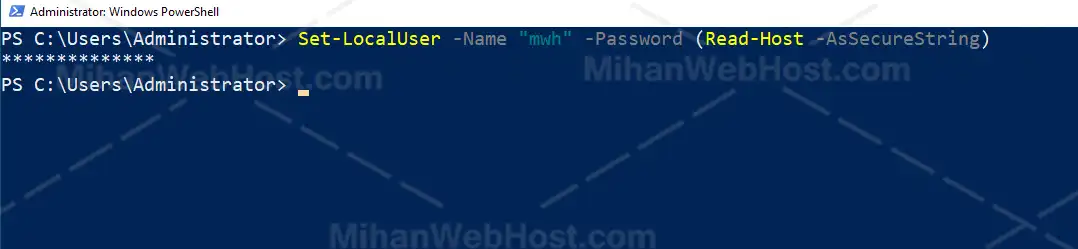 Set-LocalUser -Name "UserName" -Password (Read-Host -AsSecureString) |