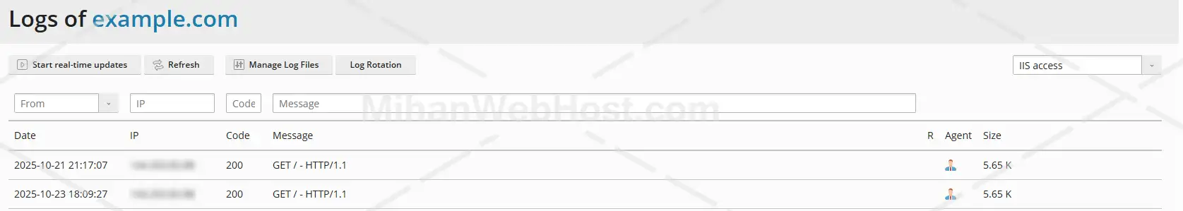 IIS access: نمایش درخواست های موفق کاربران (Access Log)